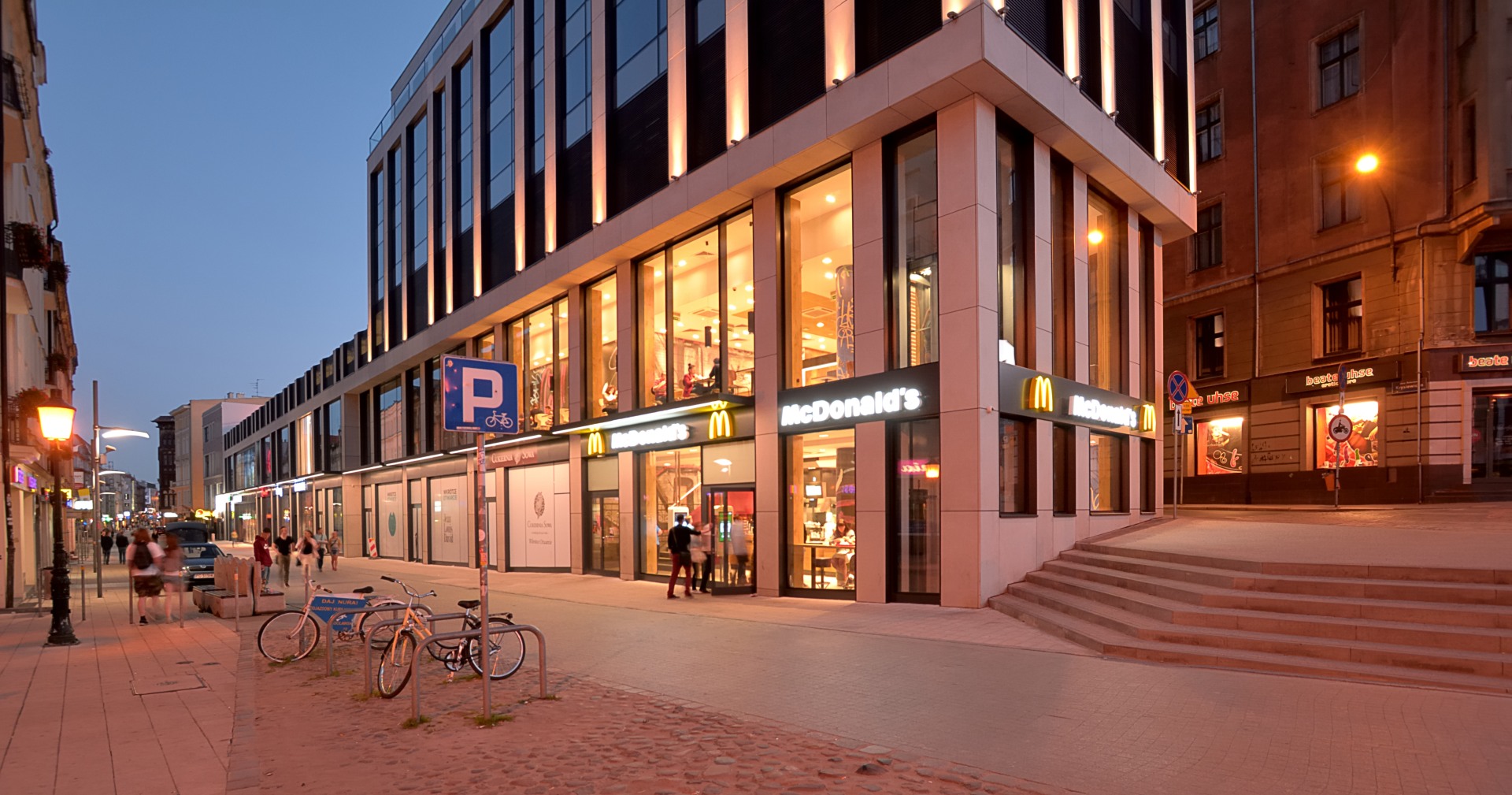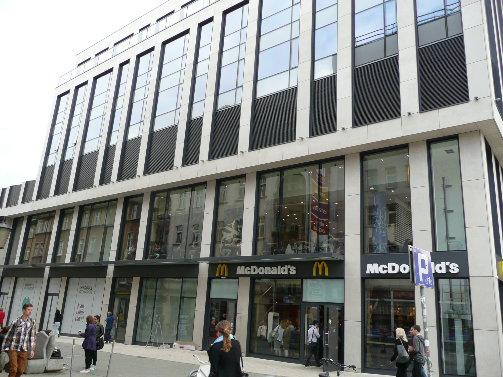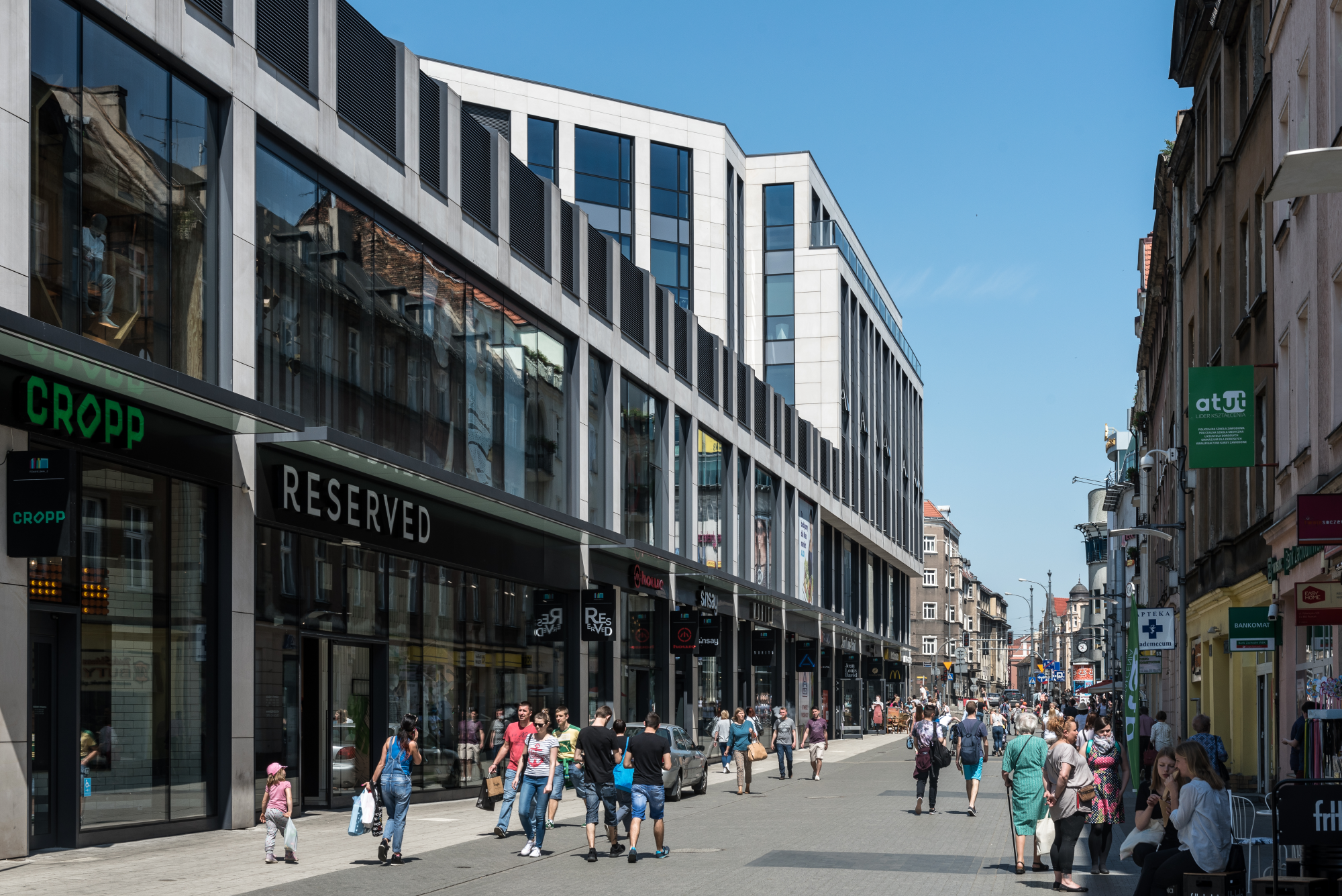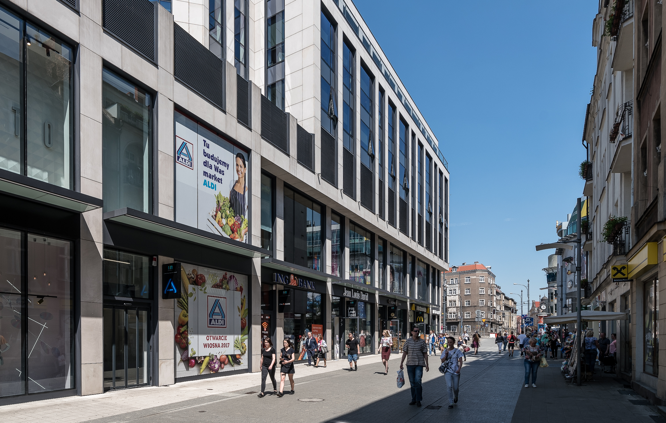 Lokale gastronomiczne i sklepy zlokalizowane od strony ulicy Półwiejskiej – jednego z najbardziej rozpoznawalnych miejskich deptaków – harmonijnie uzupełniają miejską tkankę centrum Poznania.
