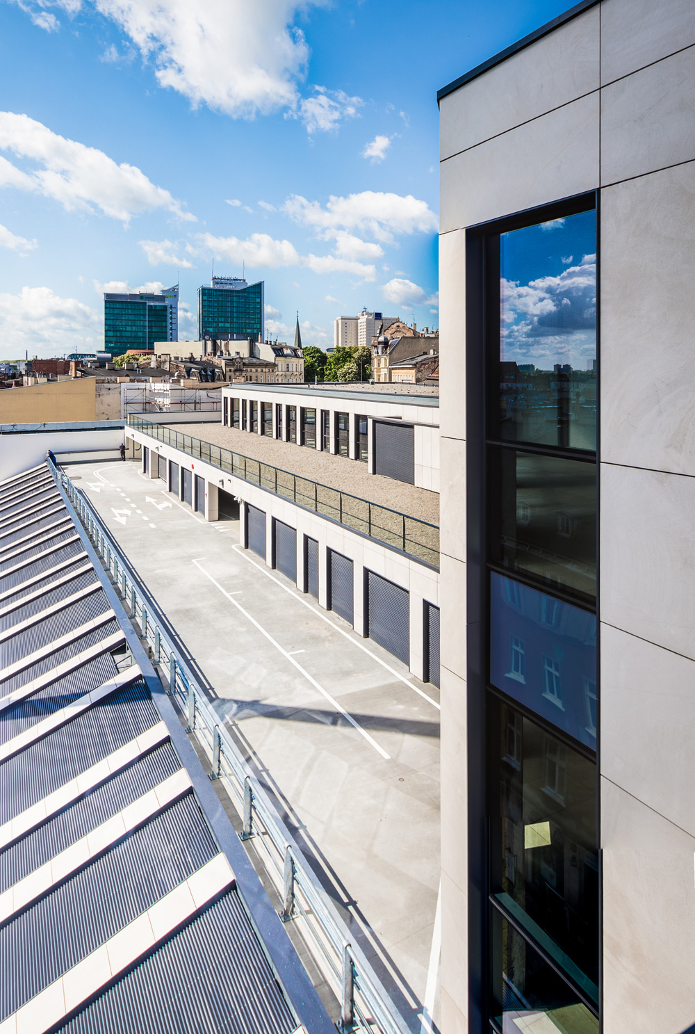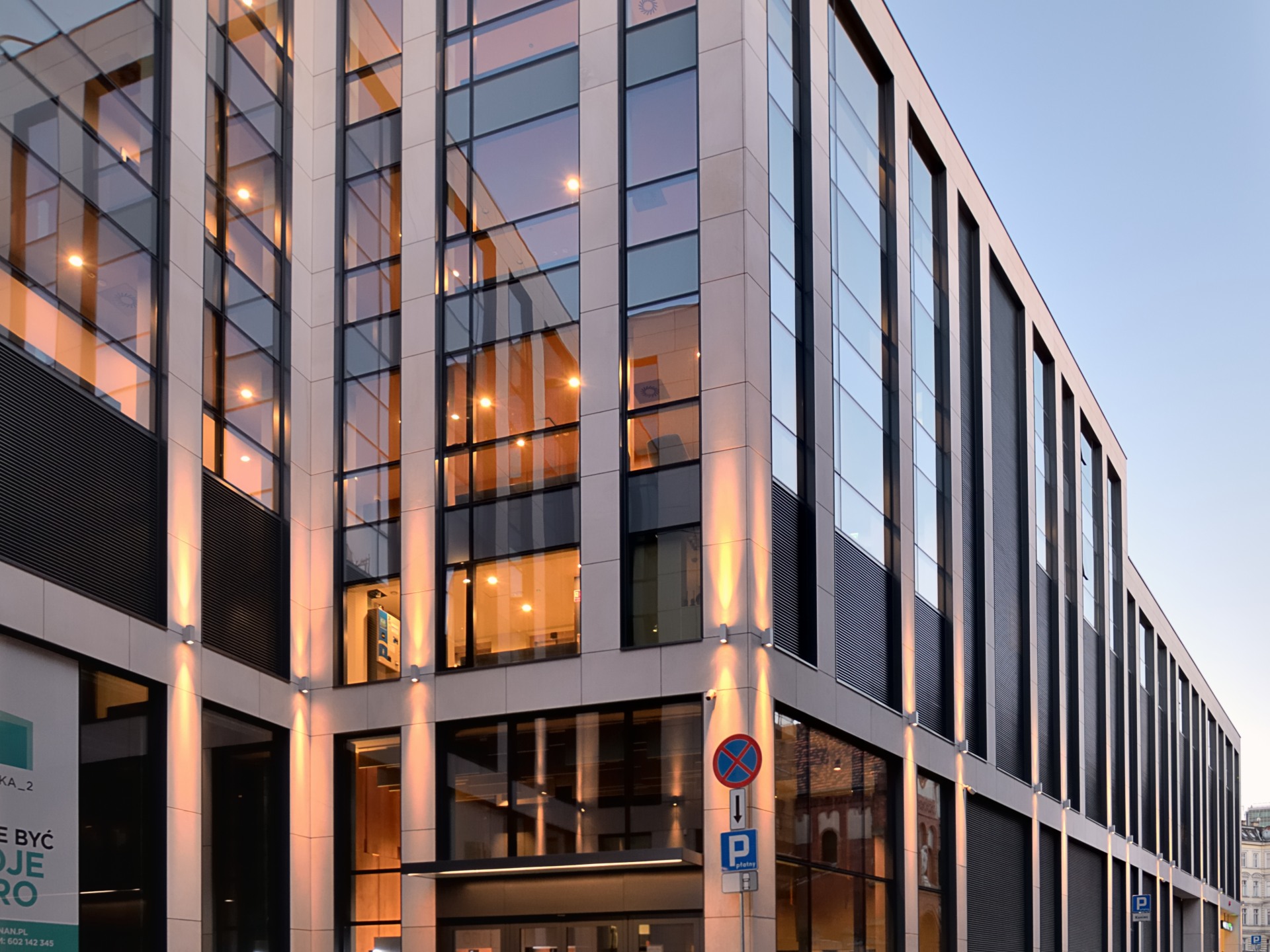 Część biurowa budynku, z osobnym wejściem od strony ulicy Krysiewicza, zapewnia komfortowe przestrzenie biurowe, prywatność oraz bezpośredni dostęp do parkingu zlokalizowanego na wyższych kondygnacjach.